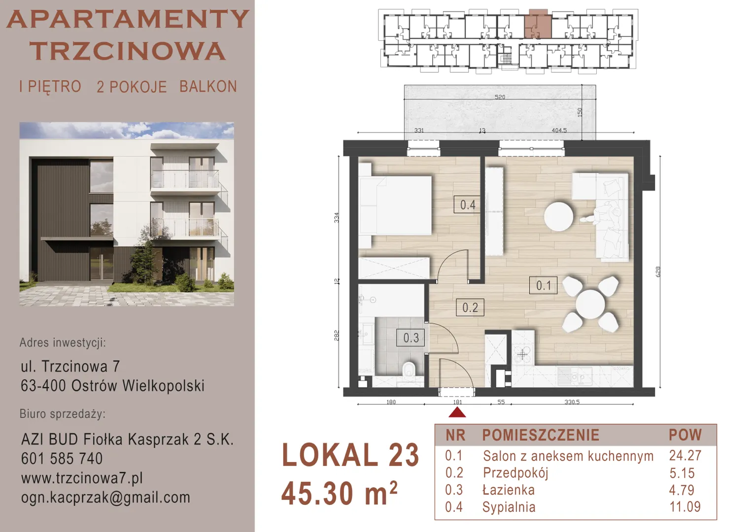 Mieszkanie 23 – 45,3 m²